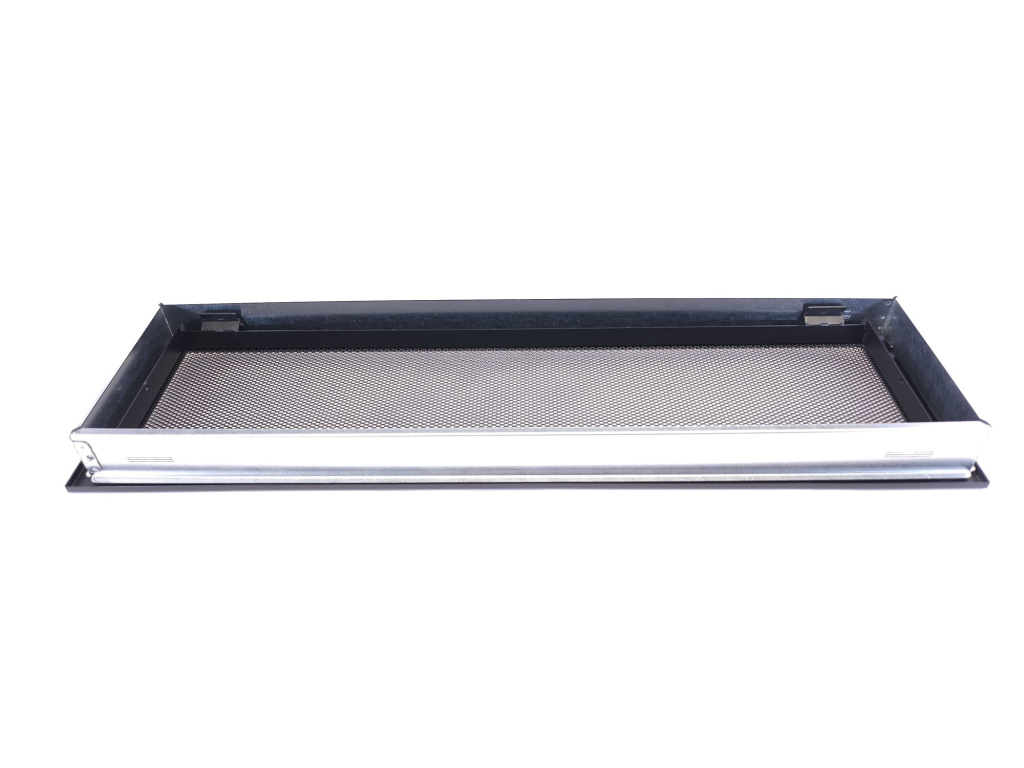 Montážní rámeček Součástí mřížky je inovativní montážní rámeček (zděř), který se snadno zabuduje do stavebního otvoru. Pomoci rozpěrných pracek se následně mřížka bezproblémově nacvakne do rámečku. Díky osazovacímu rámečku (zděři), který se pevně přilepí do stavebního otvoru pomocí kvalitního kamnařského tmelu nebo po případě přišroubuje vruty, mřížku lze jednoduše vyjmout a znovu nacvaknout. Tato flexibilita usnadňuje údržbu a čištění. Hloubka mřížky je 4 cm.