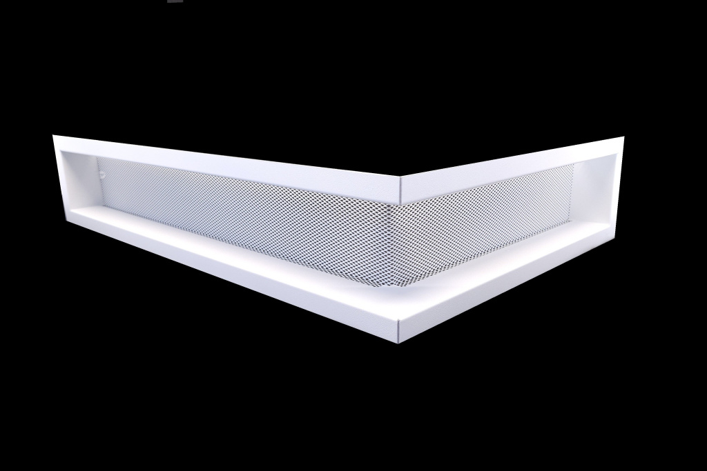 Tato tahokovová rohová mřížka je ideální pro použití v pravém nebo levém rohu stavby, jak pod, tak i nad krbovou vložkou. Je navržena s ohledem na univerzální použití, umožňující umístění na jakémkoliv rohu stavby. S hloubkou pouhých 5 cm je možné tuto mřížku instalovat i pod krbovou vložkou, kde by jinak překážely krbové nožičky.