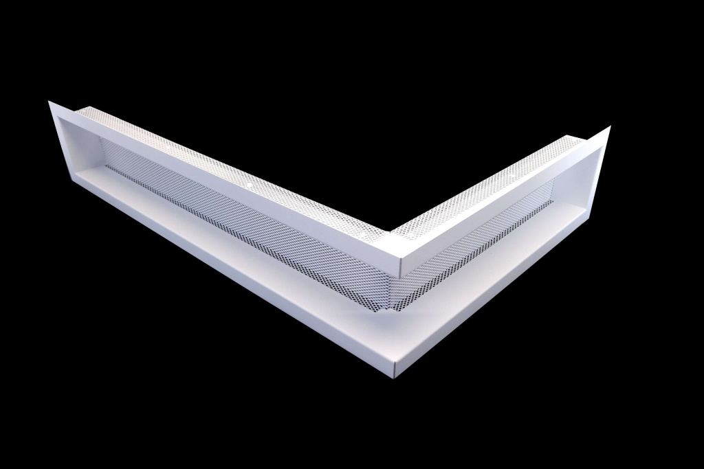 Tato tahokovová rohová mřížka je ideální pro použití v pravém nebo levém rohu stavby, jak pod, tak i nad krbovou vložkou. Je navržena s ohledem na univerzální použití, umožňující umístění na jakémkoliv rohu stavby. S hloubkou pouhých 5 cm je možné tuto mřížku instalovat i pod krbovou vložkou, kde by jinak překážely krbové nožičky.