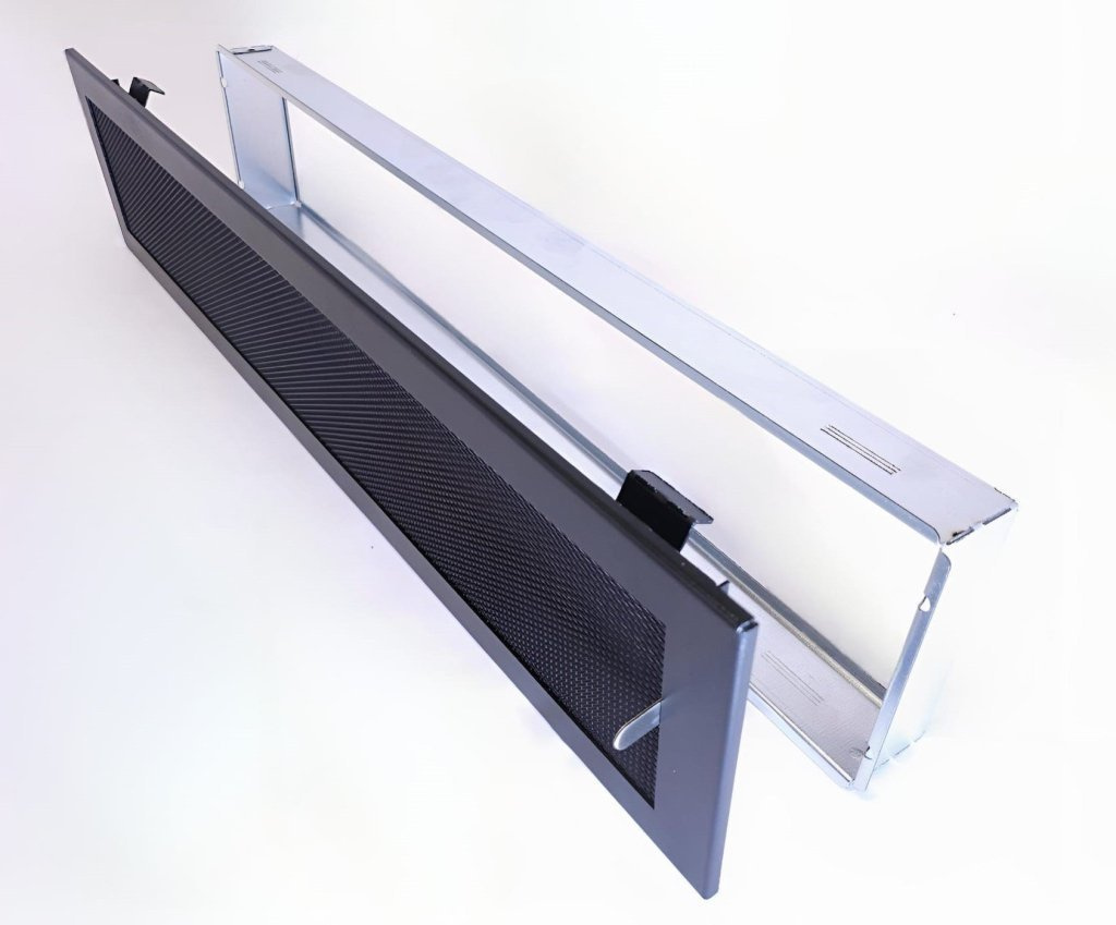 Montážní rámeček Součástí mřížky je inovativní montážní rámeček (zděř), který se snadno zabuduje do stavebního otvoru. Pomoci rozpěrných pracek se následně mřížka bezproblémově nacvakne do rámečku. Díky osazovacímu rámečku (zděři), který se pevně přilepí do stavebního otvoru pomocí kvalitního kamnařského tmelu nebo po případě přišroubuje vruty, mřížku lze jednoduše vyjmout a znovu nacvaknout. Tato flexibilita usnadňuje údržbu a čištění.